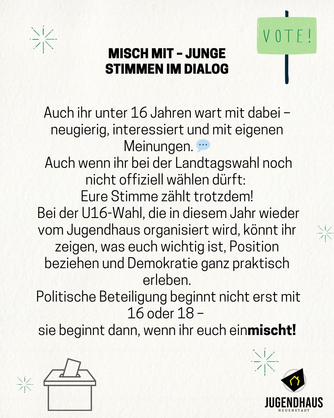 Das Jugendhaus hat am 23.09.,30.09. und 07.10. geschlossen.